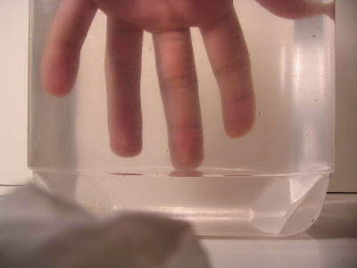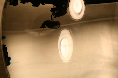 When painting, I cleaned off an ink brush by dipping it inside of a clear bin of water. I watched it go, fascinated, and decided I needed to do something with this image. I tried photographing it, only to realize it happened too fast, and better lights were needed. I took out my bed reading lamp and another similar spotlight I own. Experimenting, I used different lights and moved from a glass tomato jar to a plastic laffy taffy jug to a perfect glass vase. There was only about 20 seconds after dropping the ink in before it was no longer interesting, so I had to fill up the water and drop in the ink again and again. Before going into the step by step of what I did-here's a video showing the progression of tries. It's 38 seconds, but 13 megs, so I suggest letting it load while you read the rest.