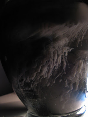 The first pass I deleted. The second pass (in a tomato jar) I got this blurry mess. For every pass I'd drop a drop or two of ink into the water. The ink is from a standard Higgins Black India Ink that you can find at any art store. I normally use it for drawing with a nib.