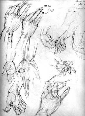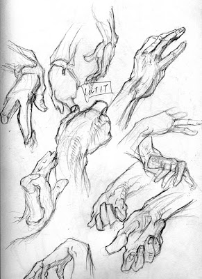 For the last week I've been trying to get a better understanding of hands. For the most part I've avoided them up till now, fully realizing that they're the second most expressive part of the body after the head. In fact, most people know how to control the expressions of their face, so what you're getting is the lies they've figured out how to announce to the world. Hands, on the other hand, (pun, very much intended) are constantly fidgeting or facing outwards, or gripping onto something nervously, giving exactly how a person actually feels.